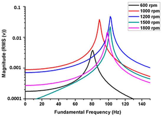 The natural frequency was affected by internal defects: as the welded joint stiffness decreased, the natural frequency decreased. The tunnel and generated voids were influenced by the natural frequency of the welded joint, and the internal defects acted as an absorber medium for the acoustic and vibration signals. At higher rotation speeds, we observed an increase in the natural frequency, as shown in Figure 8. However, the increase in natural frequency was not indicative of weld quality.