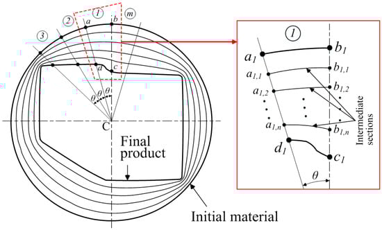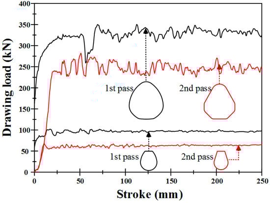 - The intermediate die shapes for multi-pass profile drawing were determined by using the intermediate sections between the initial and final cross-sectional shapes, the reduction area, the yield strength of the material, and the designer’s experience.