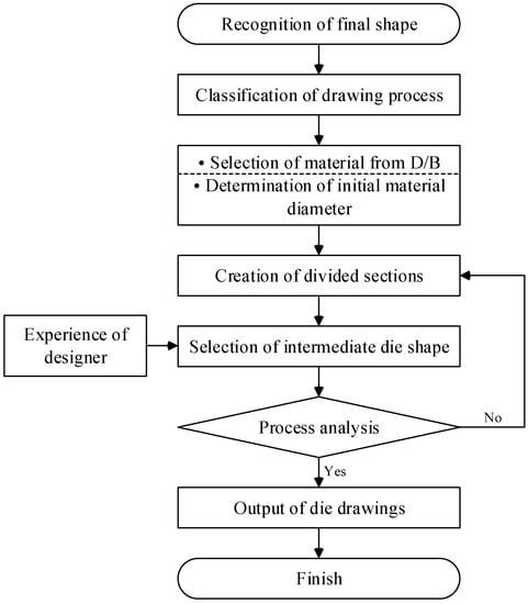 - Kim, Y.C.; Kim, D.J.; Kim, B.M. Intermediate die design system for the multi-stage drawing process. Trans. NAMRI/SME 2000, 28, 69–74. [Google Scholar]