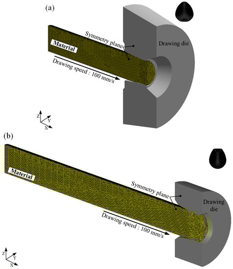 - Norasethasopon, S.; Yoshida, K. Influences of inclusion shape and size in drawing of copper shaped-wire. J. Mater. Process. Technol. 2006, 172, 400–406. [Google Scholar] [CrossRef]