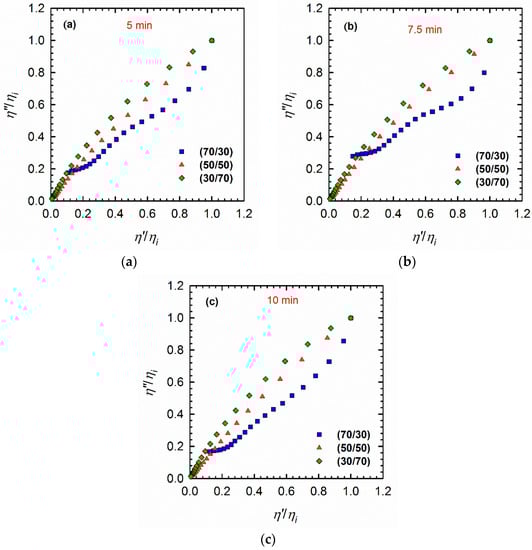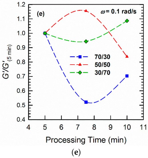 - Salehiyan, R.; Choi, W.J.; Lee, J.H.; Hyun, K. Effects of mixing protocol and mixing time on viscoelasticity of compatibilized PP/PS blends. Korea Aust. Rheol. J. 2014, 26, 311–318. [Google Scholar] [CrossRef]