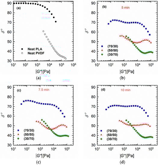 - Salehiyan, R.; Ray, S.S.; Ojijo, V. Process Driven Morphology Developement and Crystallization Behaviour of Immiscible Polylactic acid/Polyvinylidene fluoride (PLA/PVDF) blends. Macromol. Mater. Eng. 2018, 1800349. [Google Scholar] [CrossRef]