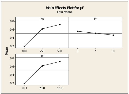 The main effects plot shown in Figure 10 reveals the effect of friction pressure and torque on , and as the friction torque was increased, the fractured surfaces decreased even on the periphery and at the center of the interface surface. If the friction torque along with the friction pressure increased, consequently, the welded surface had uniform metal bonding. The optimized friction torque was found to be 25 Nm and the friction pressure was 85 N/mm2. These optimum parameters were achieved at the 95% confidence limit. In Figure 11a, the main effect of speed, friction pressure, and Figure 11b the effect of speed, friction torque, and friction force on are shown. Due to more heat input energy, the fractured patterns had lesser intensity on the fracture surfaces of the welded interface at the friction time less than 3 s and observed river patterns were confirmed. There were crack detections and porosities distributed on the interfacial fractured surface. Table 15 and Table 16 show the regression coefficients obtained and Anova results. It can be concluded that less friction welding time leads to relatively more fractured surfaces when compared to the extended friction time conditions The regression equation was = 0.478 − 0.000007 − 0.00477 + 0.0168, S = 0.0799830, R-Sq = 94.5%, R-Sq (adj) = 91.1%