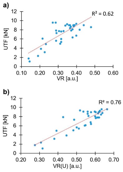 UTF—volumetric ratio plots: (a) VR; (b) VR(U).