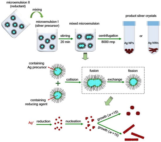 - Zhang, W.; Qiao, X.; Chen, J. Synthesis of silver nanoparticles-Effects of concerned parameters in water/oil microemulsion. Mater. Sci. Eng. B 2007, 142, 1–15. [Google Scholar] [CrossRef]