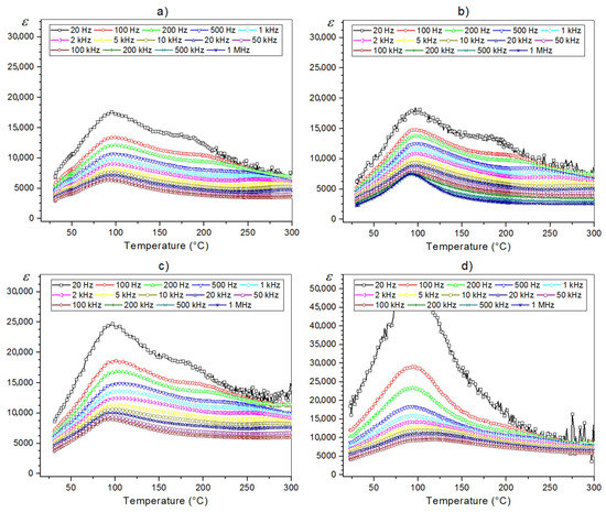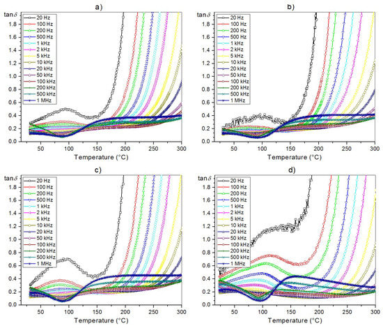 - Raymond, O.; Font, R.; Suárez-Almodovar, N.; Portelles, J.; Siqueiros, J.M. Frequency-temperature response of ferroelectromagnetic PbFe1/2Nb1/2O3 ceramics obtained by different precursors. Part I. Structural and thermo-electrical characterization. J. Appl. Phys. 2005, 97, 084107. [Google Scholar] [CrossRef]