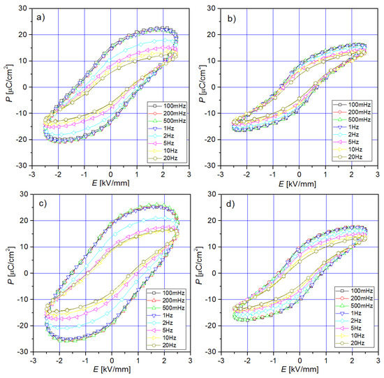 - Brzezińska, D.; Skulski, R.; Bochenek, D.; Niemiec, P. The properties of (1−x)(0.5PZT-0.5PFW)-xPFN ceramics. Integr. Ferroelectr. 2016, 173, 104–112. [Google Scholar] [CrossRef]