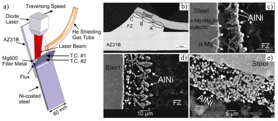 - Interfacial Microstructure of Diode Laser Brazed AZ31B Magnesium to Steel Sheet Using a Nickel Interlayer. Available online: https://app.aws.org/wj/supplement/WJ_2013_01_s1.pdf (accessed on 29 September 2018).