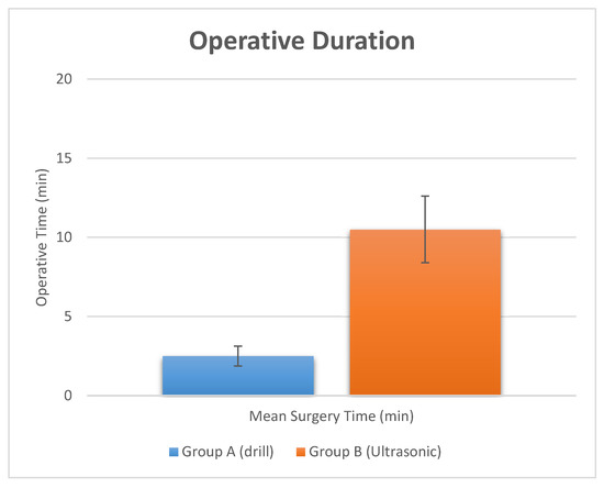 Operative surgery duration evaluated for the two study groups.