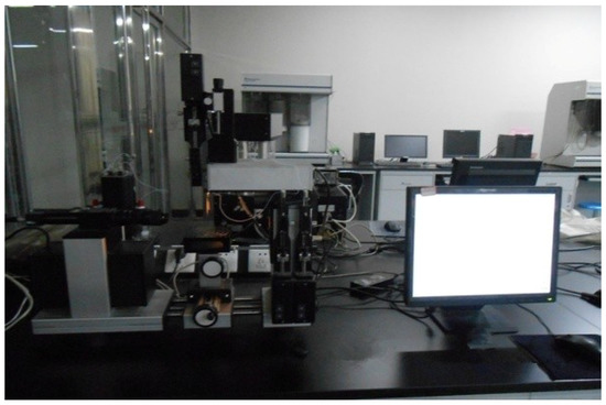 This study used an optical CA measuring device that included a host computer, dosage controlling unit, an injecting unit, and a specific analysis software. The device is shown in Figure 1. Several pictures can be captured per second with a measurement accuracy of ±0.1°. Sessile drop method was selected instead of the hanging drop method or inclined plate method. In the chosen method, the droplets were dropped on the solid surface, two tangent lines were obtained, and the angle between these lines was measured. Six parallel experiments were performed for each test. The CAs among the droplets, several aggregates, and solid asphalts were surveyed using the abovementioned methods. Water and ethanol droplets were used in the experiment. The solids used in the experiment included limestone, granite, serpentine, RCA, and two solid asphalts (matrix and SBS-modified asphalts). The testing temperature was 15 °C.