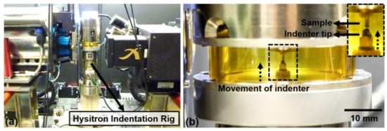 - Oliver, W.C.; Pharr, G.M. Measurement of hardness and elastic modulus by instrumented indentation: Advances in understanding and refinements to methodology. J. Mater. Res. 2011, 19, 3–20. [Google Scholar] [CrossRef]
