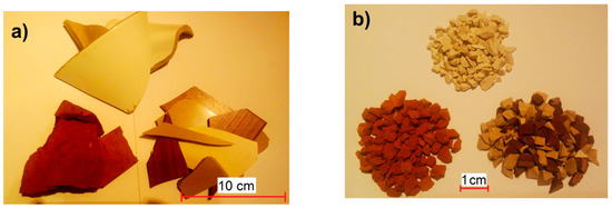 5] used pieces of the wooden core of hemp stalks (hemp shives) together with lime binder to obtain a thermal insulating composite for use as wall material. The issue increasingly being considered in scientific communities is the rational management of the construction waste. This issue also concerns ceramic materials. The use of ceramic waste as a modifier and its addition to concrete dates back to ancient times. In ancient Rome, sometimes, crushed tiles and bricks in the form of powder were used as mortar components [