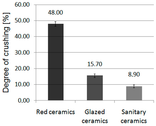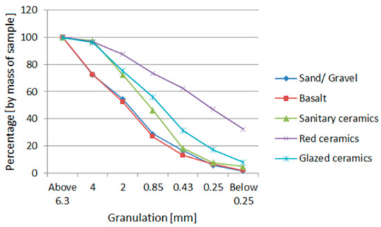 30]. To provide economic justification of the work, the authors look for special applications of this type of concrete. The results show that it can be successfully used under the conditions in which the concrete is exposed to high temperatures or in the places where a high abrasion resistance is required. Despite the fact that there has been no comprehensive experimental research conducted on elements made of concrete prepared with recycled precious ceramic aggregates, it is expected that this trend can be implemented in industry. Sanitary ceramic aggregates have also been used in the production of innovative mineral-asphalt mixtures [
