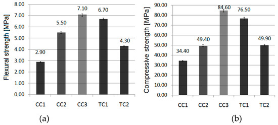 32]. The results show that the greater the addition of the ceramic aggregate, the higher the strength parameters of the concrete [