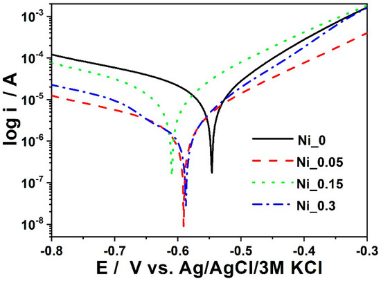 Polarization curves for samples Ni_0 to Ni_0.3.