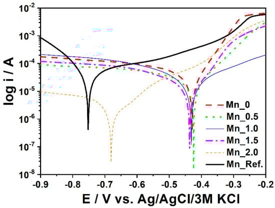 The values of corrosion potential, current density, and corrosion rate estimated for the samples with Mn content.