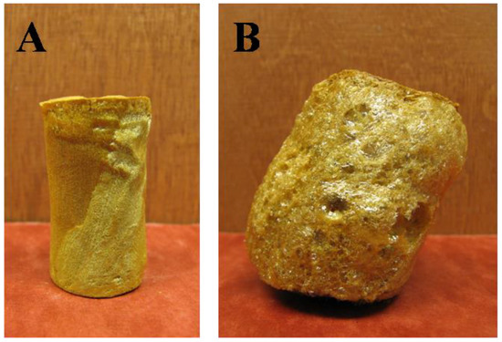 Image of 5 wt. % Torlon® AI-50 materials with (A) 6 and (B) 10 equivalents of amine.