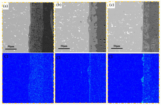 EPMA maps of the elemental distribution of the cross-section of 2A02 Al alloy after corrosion for 200 h at (a) 30; (b) 60; (c) 80 °C.