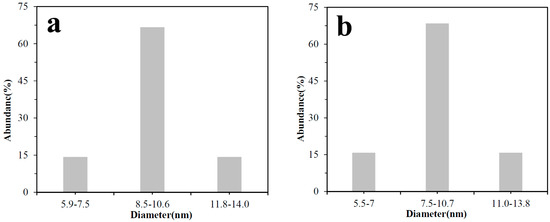 Particle distribution of AgHBP-A (a) and AgHBP-N (b).