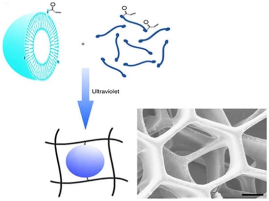 Nanogels have been also 3D-printed for bioprinting in tissue engineering []. Pluronic F-127 gels resemble the native tissue but do not last long enough for long-term cell culture. Muller et al. mixed unmodified Pluronic F-127 with acrylated Pluronic F-127 to create strong and stable nanostructured hydrogels via UV crosslinking []. By subsequent elution of the unmodified Pluronic from the crosslinked networks, cell viability of the encapsulated chondrocyate was increased. The mechanical strength of the nanostructured hydrogels was further increased by adding methacrylated hyaluronic acid.