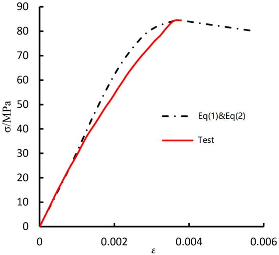 It is observed from Figure 4 that the assumed ascending Equation is very close to the experimental curve of grout material. Therefore, Equations (1) and (2) will be used to describe the compressive behavior of the grout material.