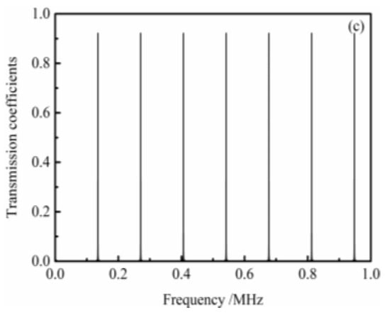 The transmission spectra of the ultrasound from a thin plate into a thick plate or from a thick plate into a thin plate are the same through the numerical calculation. The incident direction is not discussed in the following section.