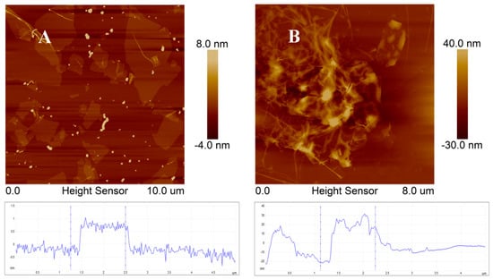 Atomic force microscopy (AFM) image of GO (A) and GO-NCNTs (B) from their dilute aqueous dispersion on freshly cleaned mica.