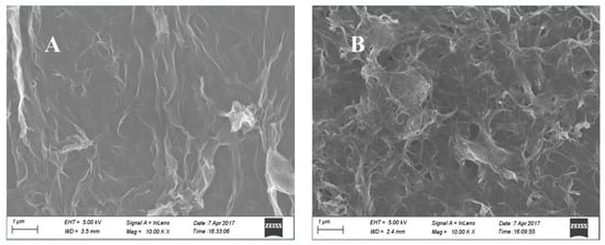 Scanning electron microscopy (SEM) images obtained from 3DG (A) and 3D graphene-nitrogen doped carbon nanotubes (3DG-NCNTs) (B) modified glassy carbon (GC) electrode.