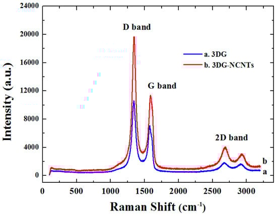 Raman spectra of 3DG (curve a) and 3DG-NCNTs (curve b) modified GC electrode.
