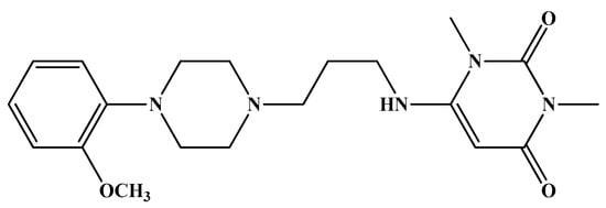 - Ambavaram, V.B.R.; Nandigam, V.; Vemula, M.; Kalluru, G.R.; Gajulapalle, M. Liquid chromatography-tandem mass spectrometry method for simultaneous quantification of urapidil and aripiprazole in human plasma and its application to human pharmacokinetic study. Biomed. Chromatogr. 2013, 27, 916–923. [Google Scholar] [CrossRef] [PubMed]