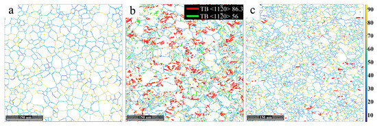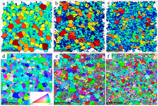 - Humphreys, F.J. Reconstruction of grains and subgrains from electron backscatter diffraction maps. J. Microsc. 2004, 213, 247–256. [Google Scholar] [CrossRef] [PubMed]