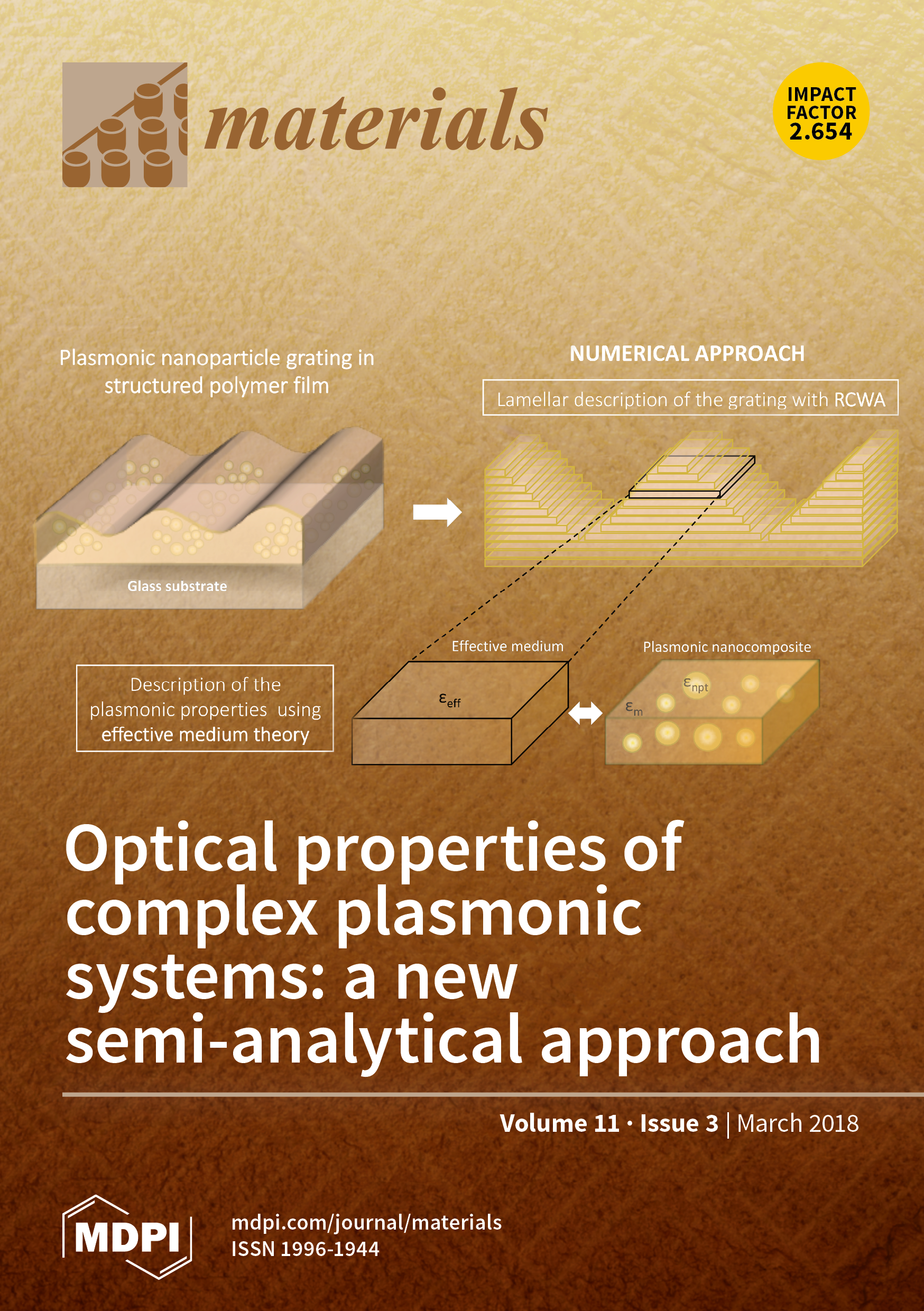 Cover Story: Complex plasmonic nanocomposites have a great potential in a wide range of applications ranging from photonics and photovoltaics, to catalysis for environmental issues such as water remediation. Indeed, the evolution of nanofabrication techniques, which have radically improved in the past decades, allows the synthesis of ever more advanced structures presenting very complex geometries. However, accurately modeling the optical properties of such systems, which are often beyond the capabilities of exact numerical methods, can still be challenging. In this context, we propose an original, semi-analytical approach that combines RCWA (rigorous coupled wave analysis) with advanced effective medium theory to address the problem. To validate our approach, we test it using experimental measurements realized on plasmonic nanoparticles periodically distributed in structured polymer thin films. In particular, we show that it is possible to retrieve the specific features of these original gratings,
