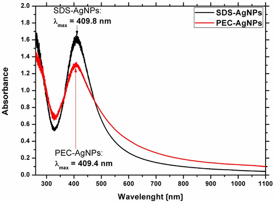 2.1. Characterization of the PEC-AgNPs and SDS-AgNPs