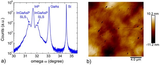2.2. InP and Strain Compensated InGaAsP Superlattice on Si