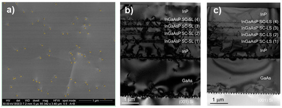 - MacPherson, G.; Goodhew, P.J. A refined scheme for the reduction of threading dislocation densities in InxGaAs1−xAs/GaAs epitaxial layers. J. Appl. Phys. 1996, 80, 6706–6710. [Google Scholar] [CrossRef]