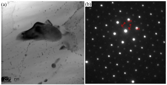 Figure 6a, which is confirmed as AlFeMnSi impurity phase by EDS result. The selected area electron diffraction (SAED) pattern along [111]Al incident beam is shown in