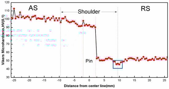 Figure 9. Because of the different microstructure and the mechanical properties of the base materials, an asymmetric microhardness distribution is obtained, which is also seen in other studies [