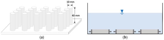 (a) A schematic diagram of molds prepared in the laboratory for casting cylindrical mortar specimens; (b) Mortar specimens immersed in Na2SO4 solution.