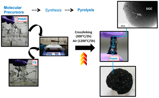 Schematic diagram of the general process for the synthesis of macroporous TiO2/SiOC nanocomposite.