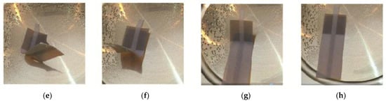 The programming procedure is as follows: set and maintain the water temperature at 70 °C. Put the specimen in the hot water for 2 min until the whole specimen becomes soft. Take out the specimen and fold vertically first, followed by folding horizontally. Then, put the folded specimen in the hot water again until it fully recovers. Repeat the programming stage and folding of the same specimen until it cracks and record the maximum folding times.