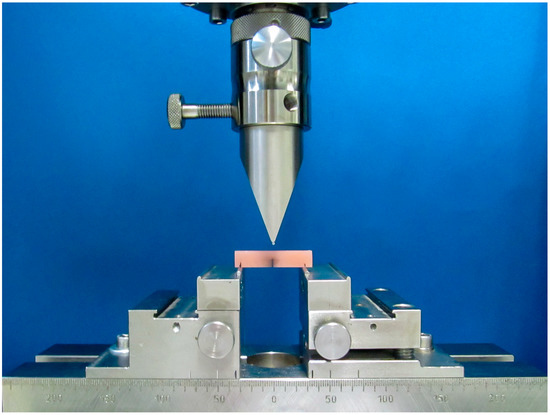 Experimental setup for the three-point bending test.