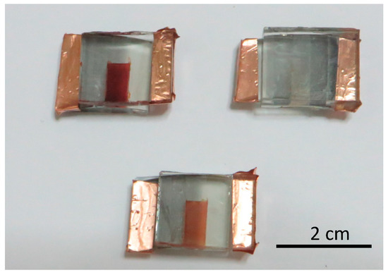 Counter electrodes were prepared through a three-electrode electrodeposition of an aqueous hexachloroplatinic acid solution (0.002 M) on conductive glass substrates. The electrodeposition was performed using a computer-controlled Function Generator (AMEL, 586) (586, Milano, Italy), a potentiostat–galvanostat (AMEL, 2053) (2053, Milano, Italy) and a noise reducer (AMEL NR 2000) (NR 2000, Milano, Italy).