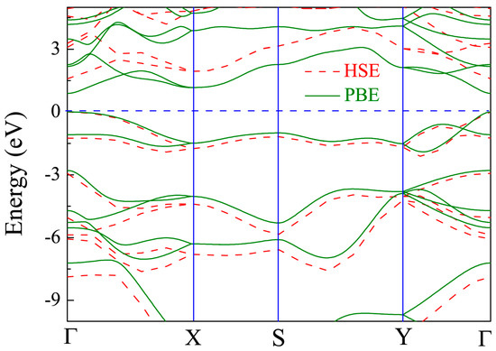 - Heyd, J.; Peralta, J.E.; Scuseria, G.E.; Martin, R.L. Energy band gaps and lattice parameters evaluated with the Heyd-Scuseria-Ernzerhof screened hybrid functional. J. Chem. Phys. 2005, 123, 174101. [Google Scholar] [CrossRef] [PubMed]
