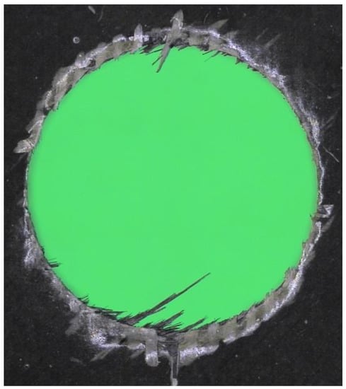 Davim et al. [49] presented a novel technique using digital analysis to measure the adjusted delamination factor (Fda), and showed that taking into account the damage area in the delamination factor allows for a better characterization of delamination after drilling composite materials.