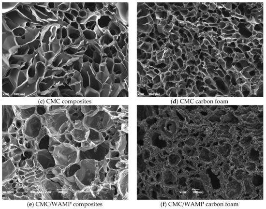 2.2. Preparation of CMC Composite, CMC/WAMP Composites and Their Carbon Foams
