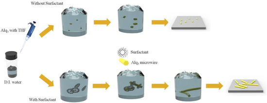 Schematic illustration of surfactant-assisted organic crystal growth using reprecipitation method.
