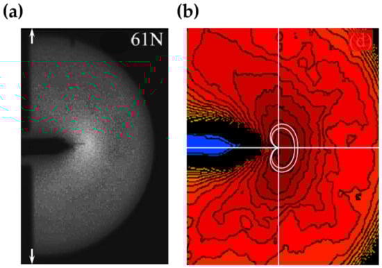 - Basnet, R.; Timilsina, S.; Lee, K.H.; Kim, J.S. Evaluation of the elasto-plastic crack tip singularities via mechano-luminescent effects. Int. J. Eng. Sci. 2018, 123, 127–142. [Google Scholar] [CrossRef]