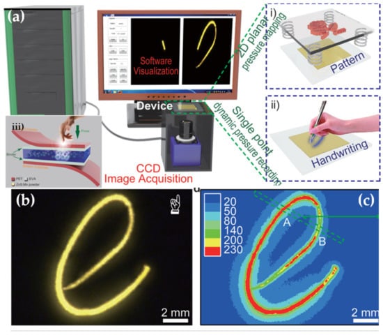 - Wang, X.; Que, M.; Chen, M.; Han, X.; Li, X.; Pan, C.; Wang, Z.L. Full Dynamic-range pressure sensor matrix based on optical and electrical dual-mode sensing. Adv. Mater. 2017, 29, 1605817. [Google Scholar] [CrossRef] [PubMed]