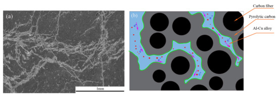 SEM micrographs of C/C–Al–Cu: (a) Conductive phase; and (b) conductive model.