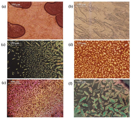 - Goodby, J.W.; Collings, P.J.; Kato, T.; Tschierske, C.; Gleeson, H.; Raynes, P. Handbook of Liquid Crystals; Wiley-VCH: Weinheim, Germany, 2014. [Google Scholar]